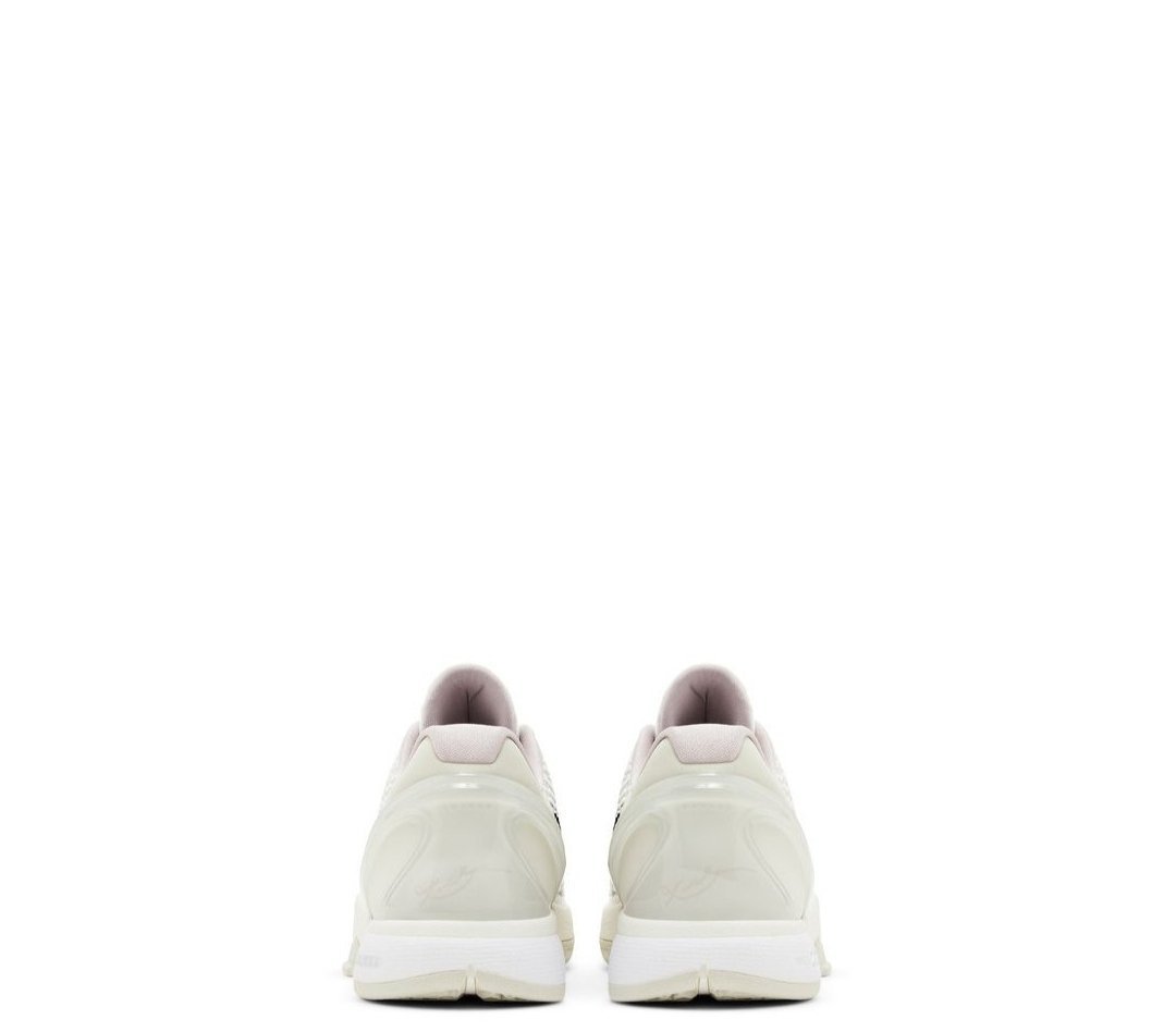 The Nike Zoom Kobe 6 Protro ‘Sail’, also known as ‘All-Star 2.0’, features an off-white textile upper covered in an array of raised polyurethane stars on the lateral side. The medial side displays the scaly snakeskin pattern for which the Kobe 6 is known. A floating black Swoosh adorns the side panel, matching Kobe’s signature shield logo atop the tongue. Updated performance benefits include a full-length Cushlon midsole with a large and flexible Zoom Turbo unit in the forefoot.
